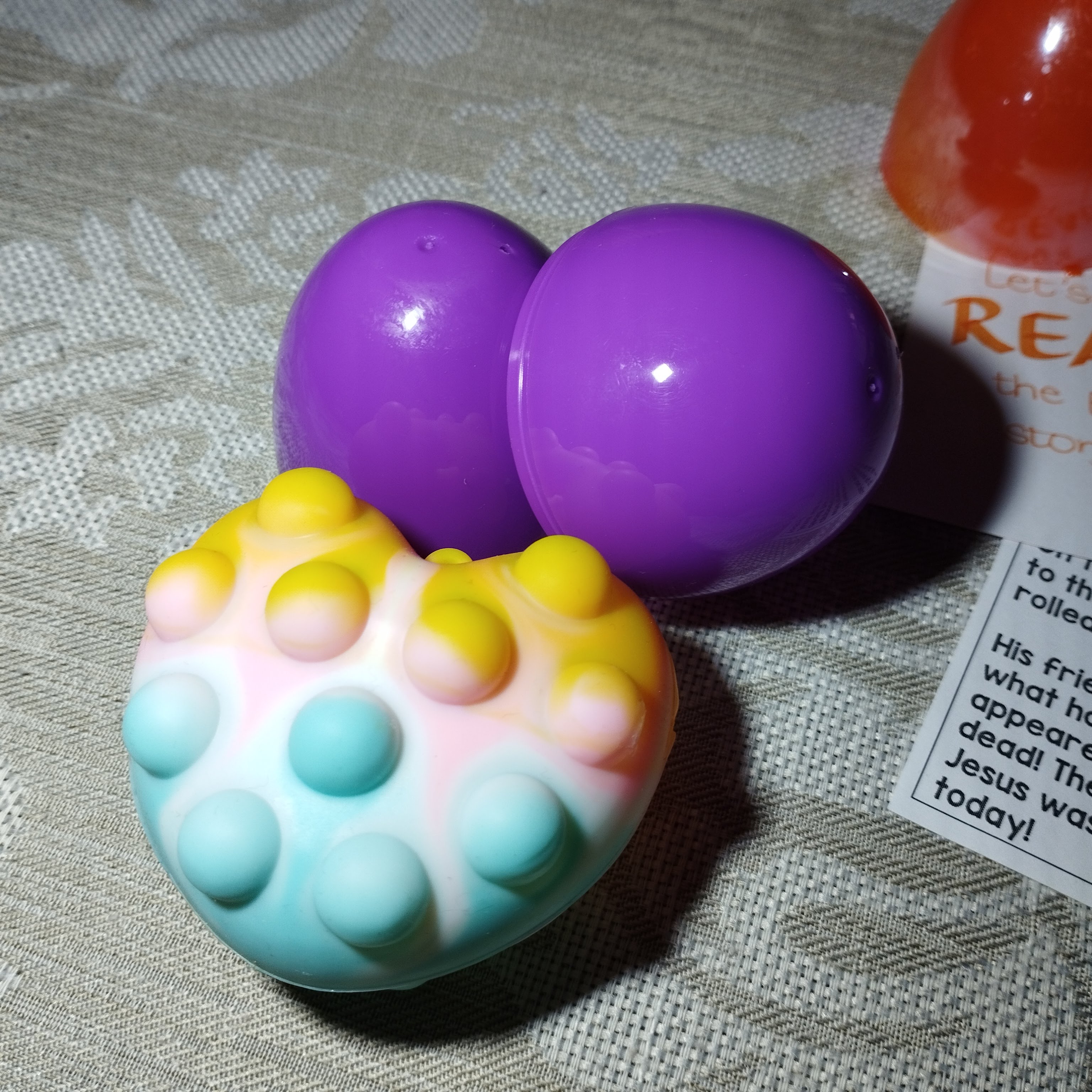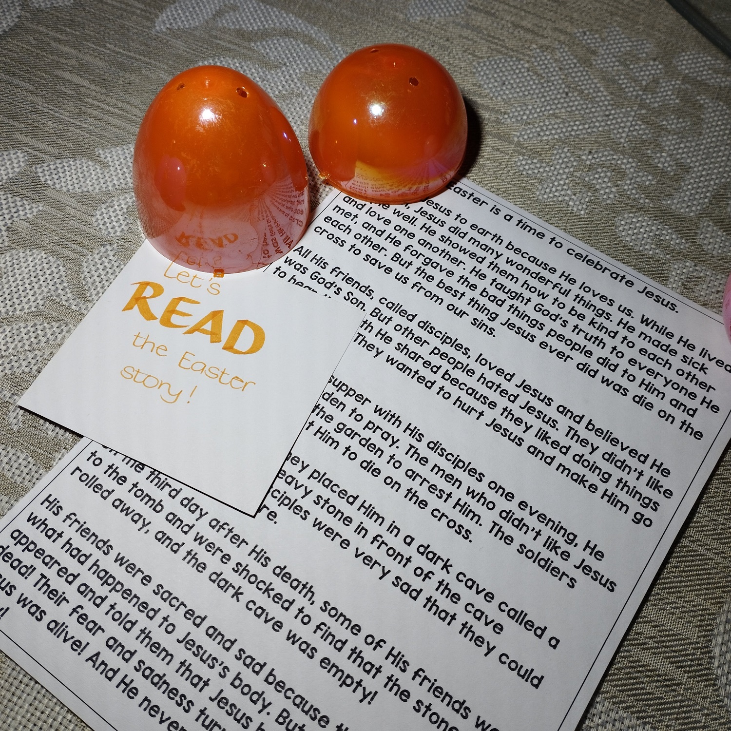 So in our home, Easter is a very special time. We count down the sleeps until Sunrise Service on Easter Sunday. We have found hot cross buns that R can eat. I fill plastic eggs with 'safe' treats and activities so that she can enjoy an Easter egg hunt. And we read the Easter story from every version of kiddies Bible that we have...at her request.